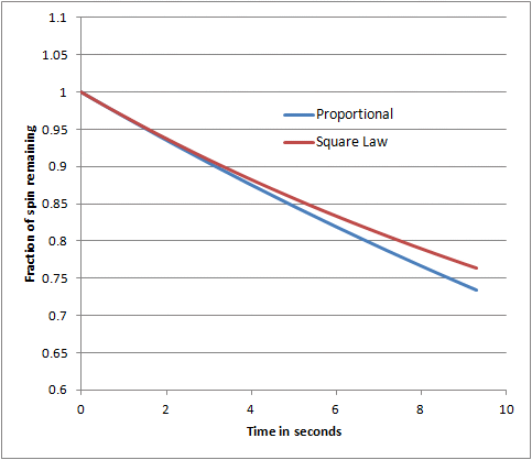 The decay of the spin is due to the frictional force of the air on the