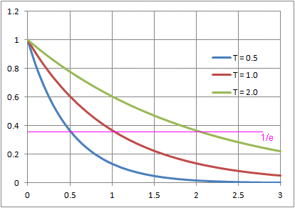 T being the time constant of the related exponential.