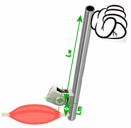 This kind of lever is the same as the wrench we looked at when we first introduced torque. The muscle force