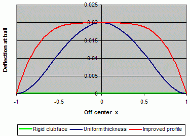 Let us look at the face deflection for a few possible clubface designs.
