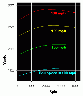 a 4000rpm spin. The resulting distance is 199 yards. The peak distance