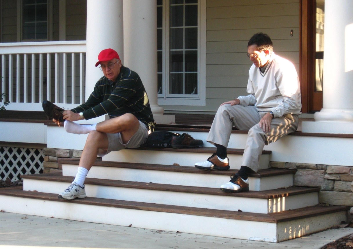 We put on our golf shoes on the front steps, and we're off for some golf! | You
