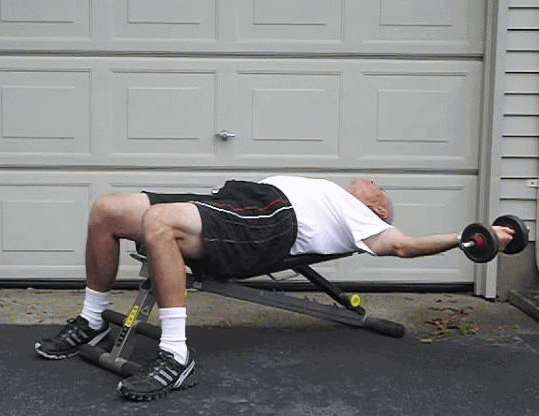 dumbbell from the elbow. Don't swing it at the bottom; that will cheat