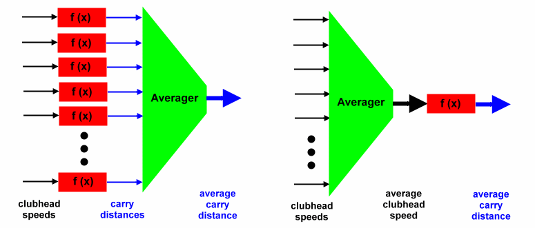 distance. Then it averages the carry distance for a final answer. Mathematically, it is Avg(f(x)), the average of the function.