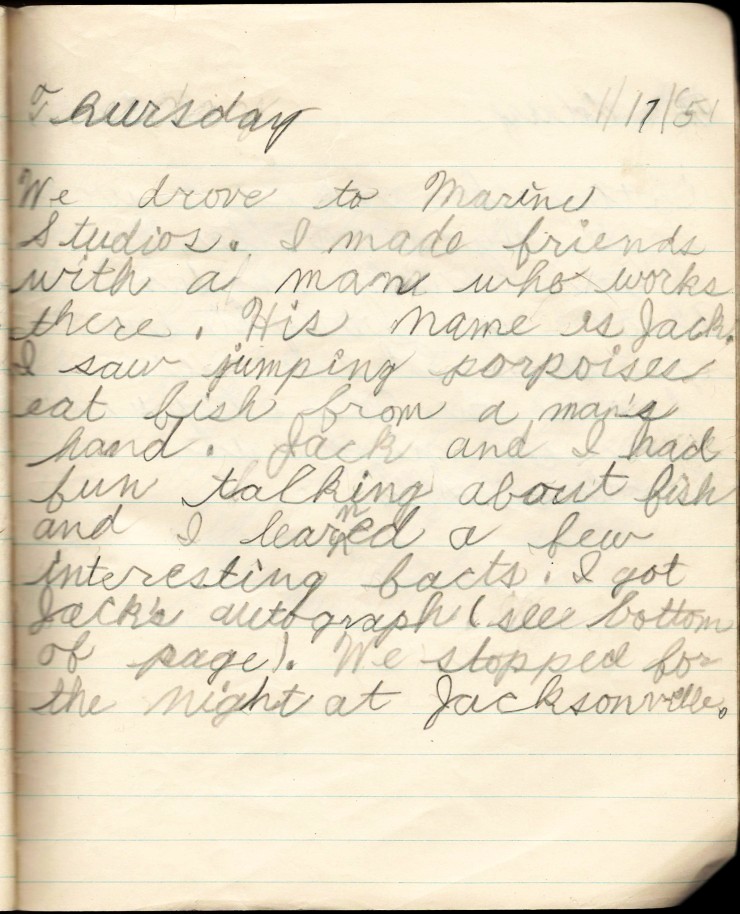 I don't know why, but bottlenose dolphins were called "porpoises" for half my life. That is certainly what I knew them as in 1951. Dophins and porpoises are closely related, but the animals in these pictures are dophins. In the pelican picture, I think that's Mom and Bob in the background. ![]() It would be a decade before SeaWorld opened. In the meantime, that niche was filled by Marine Studios -- which did it fairly well for the time. (Early on, SeaWorld wasn't much more impressive.)