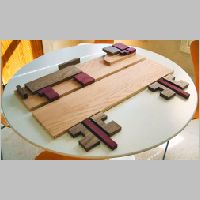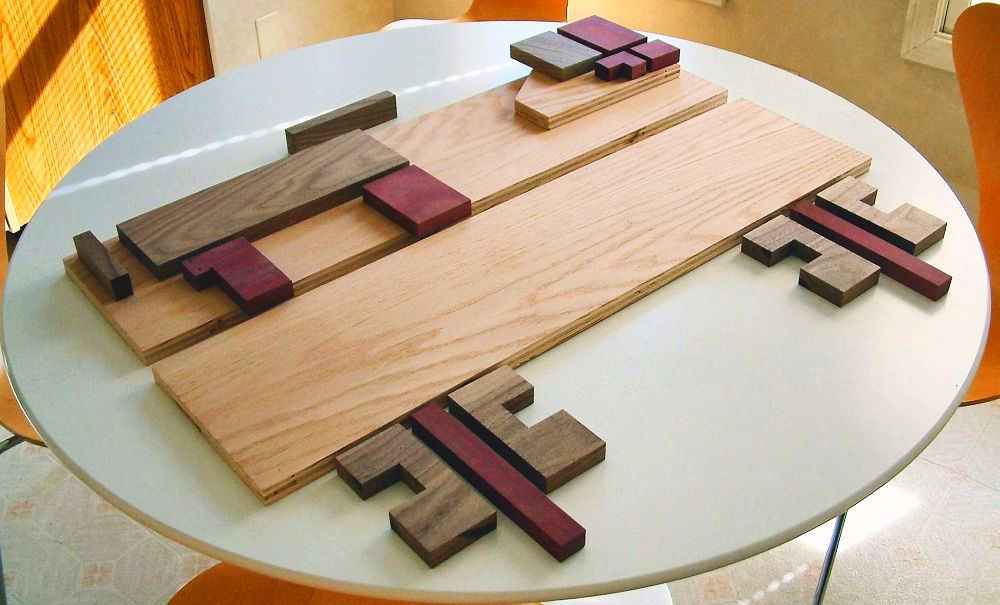 The wood parts have been drilled and sanded, and placed in an assembly mockup.