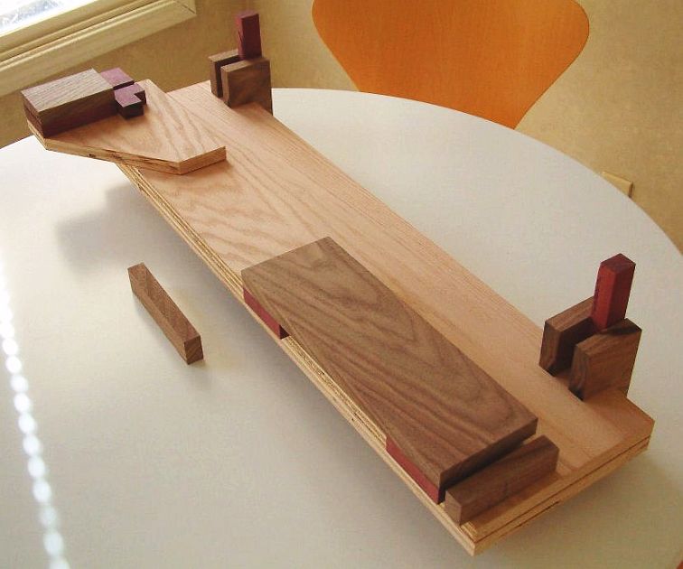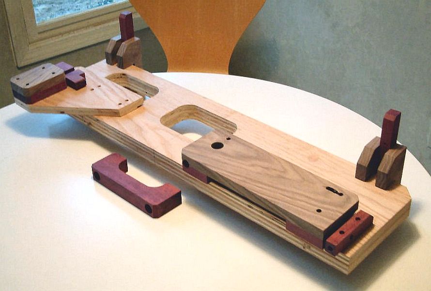 be built from hardwood stock, hardwood plywood, or UHMW stock. But do not free-lance materials that the plans do not recommend.