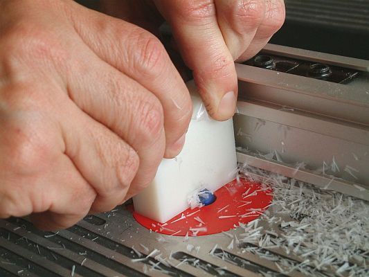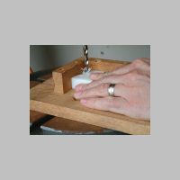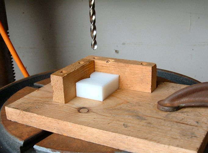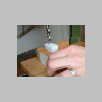 pieces, drilling, rotating the piece, drilling, and turning it up on