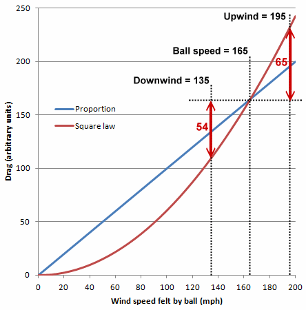a headwind and a tailwind! Not only shorter, but less accurate too. Get