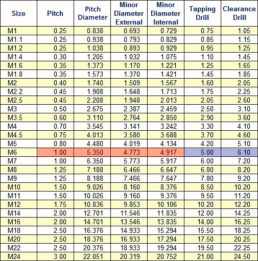 instance, here is a table that specifies metric thread sizes. It